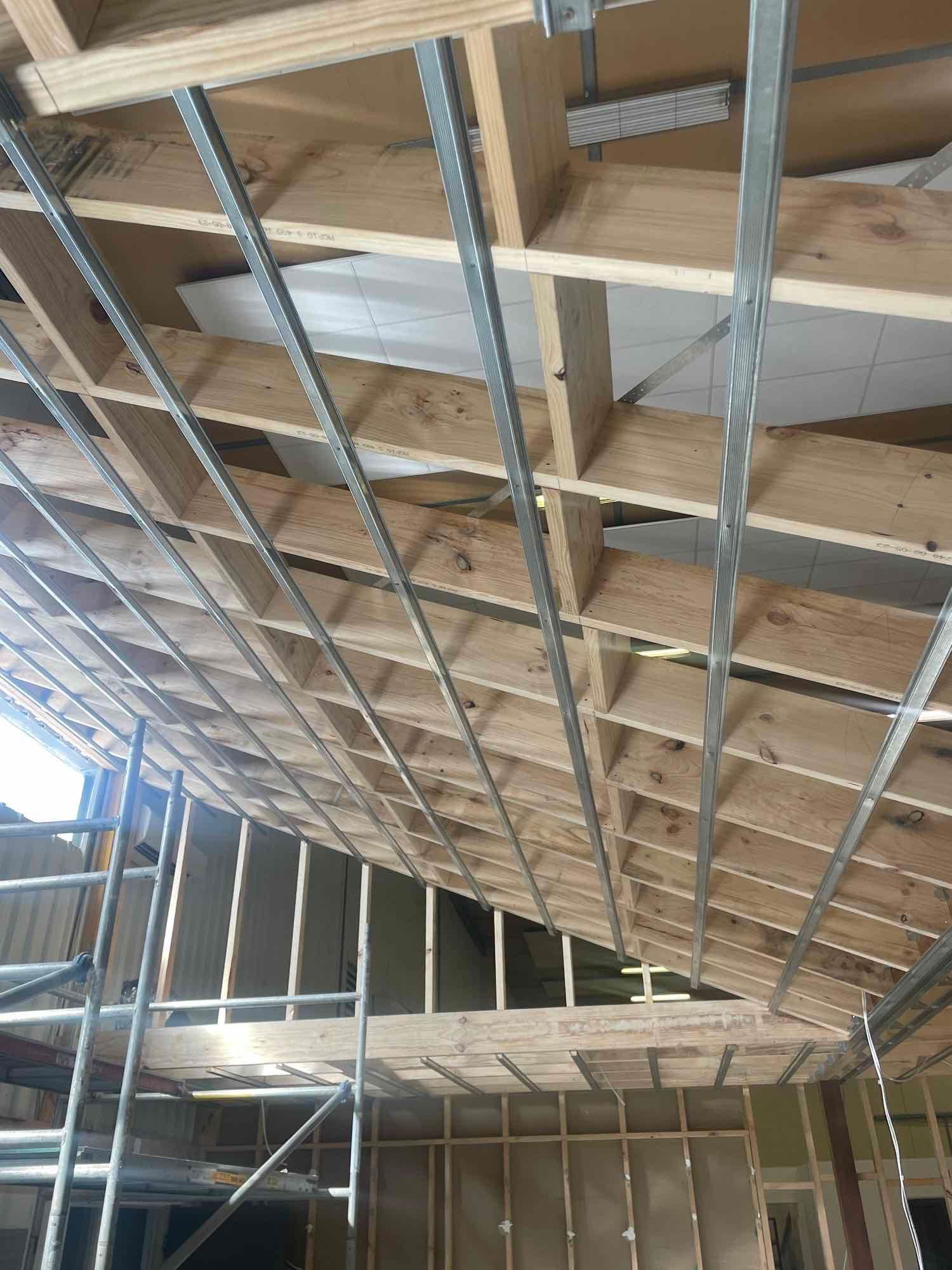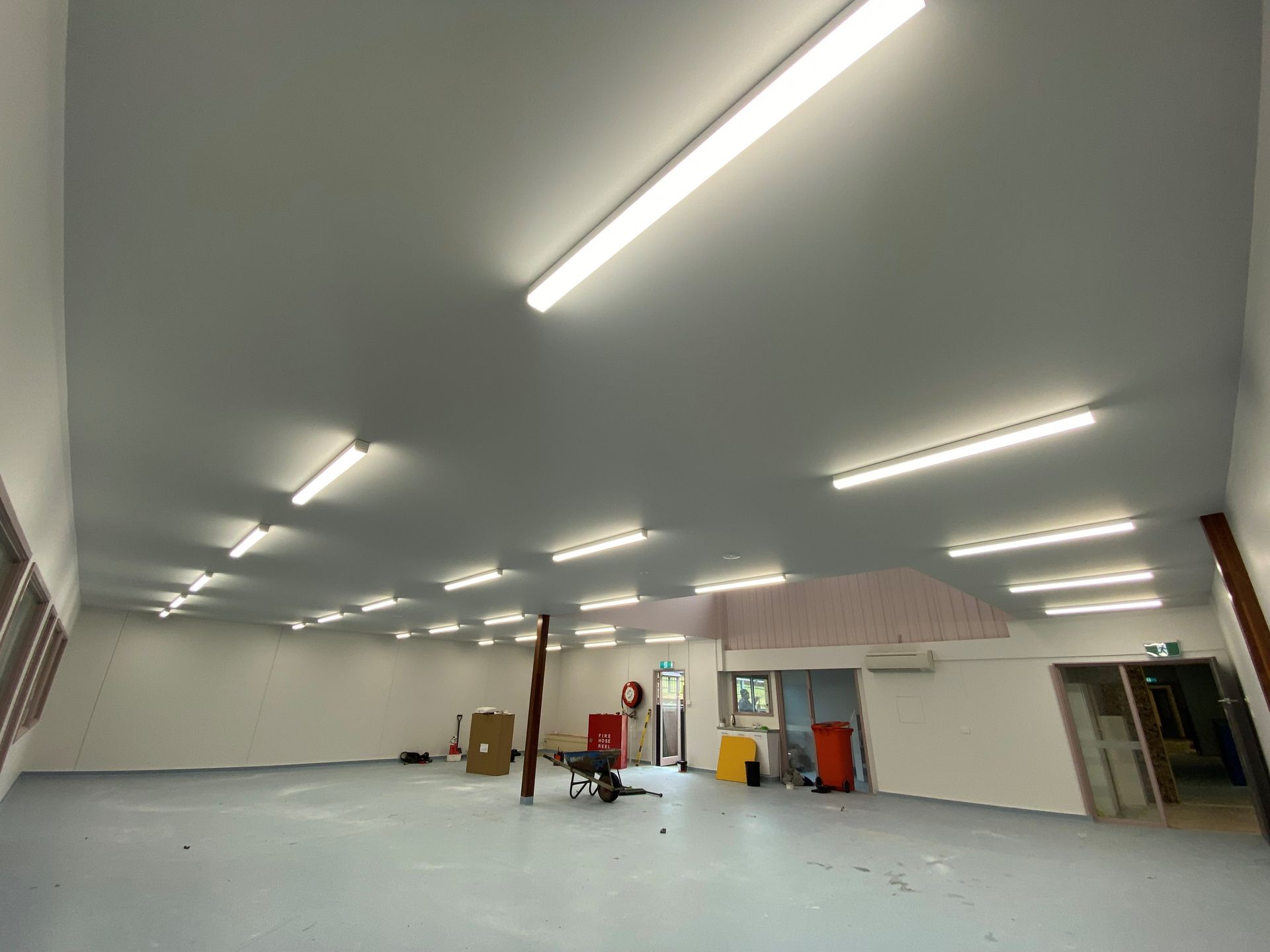 Initial works were demolition of existing walls, installation of new footings for structural timber beams and posts, installation of new timber framework for new walls and vaulted/cathedral ceiling. The cathedral ceiling with skylights, was installed to optimise natural lighting for the children. New plaster walls, new pinboards, painting, air conditioning.
